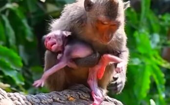 The struggling young mother monkey moved uncertainly through the branches, her thin arms trembling with exhaustion. Days of weakness and stress had drained her strength, leaving her confused and overwhelmed. …